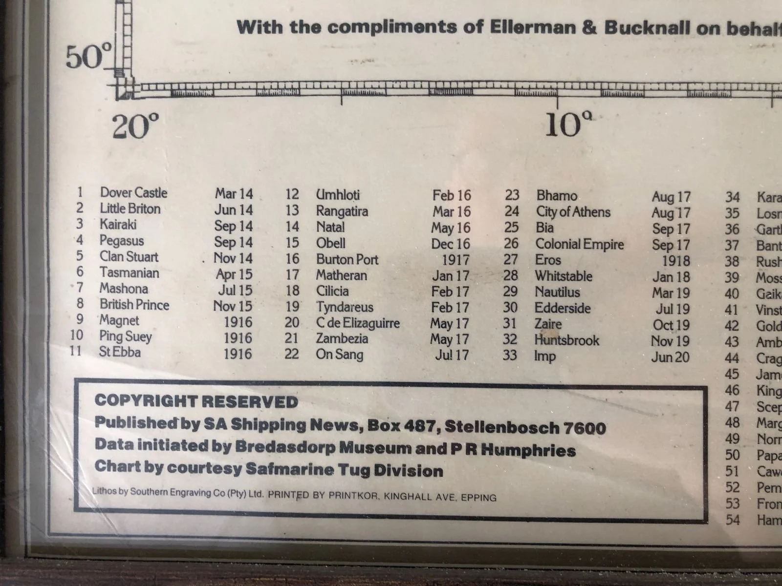 Published c. 1970 by Ellerman Harrison Container Line. Depicted are shipwrecks along the Southern African coast.