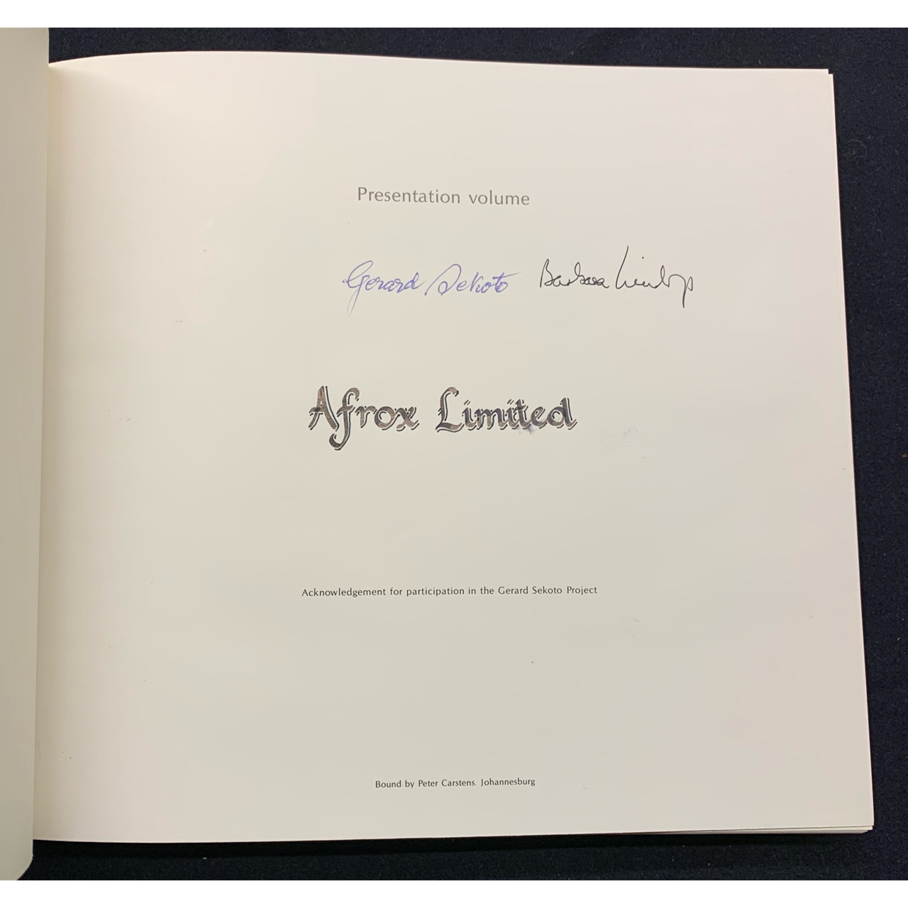 Signed by Gerard Sekoto and Barbara Lindop.