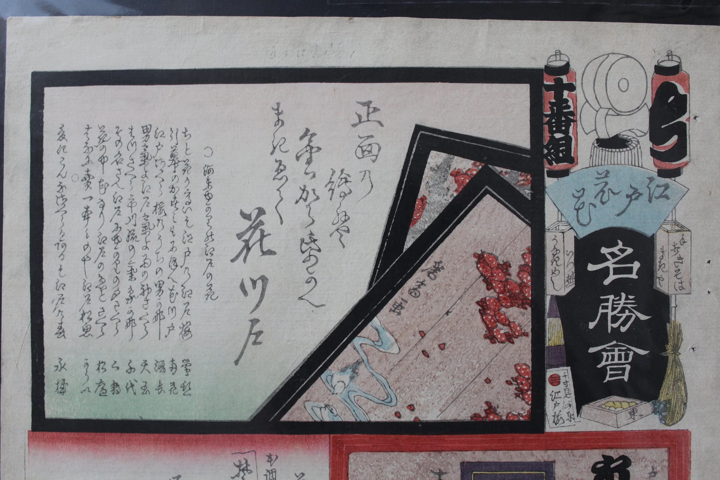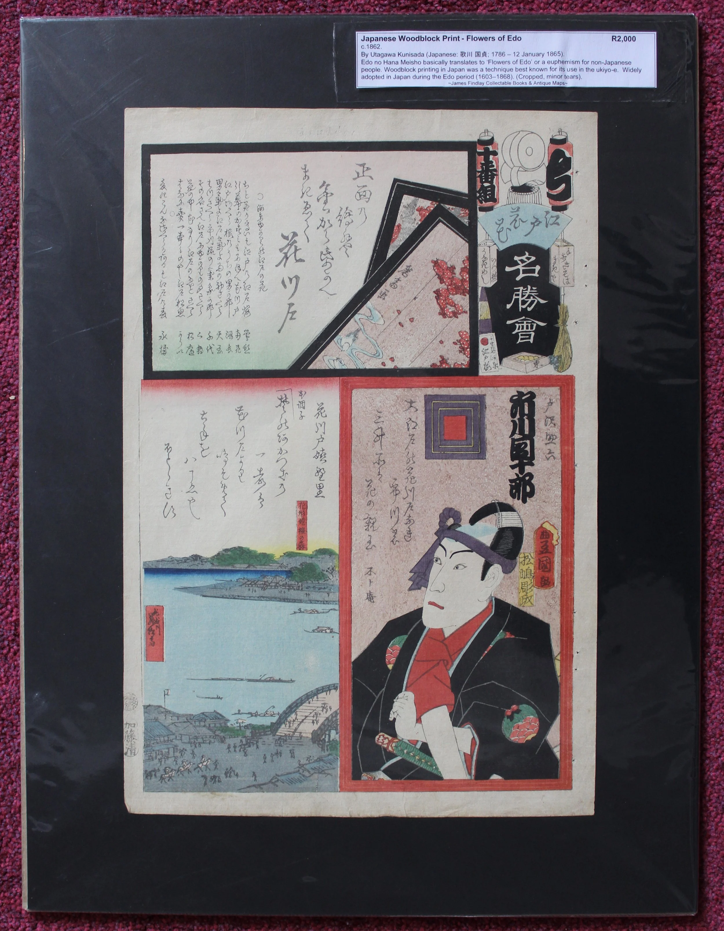 Edo no Hana Meisho basically translates to 'Flowers of Edo' or a euphemism for non-Japanese people. Woodblock printing in Japan was a technique best known for its use in the ukiyo-e. Widely adopted in Japan during the Edo period (1603–1868).
