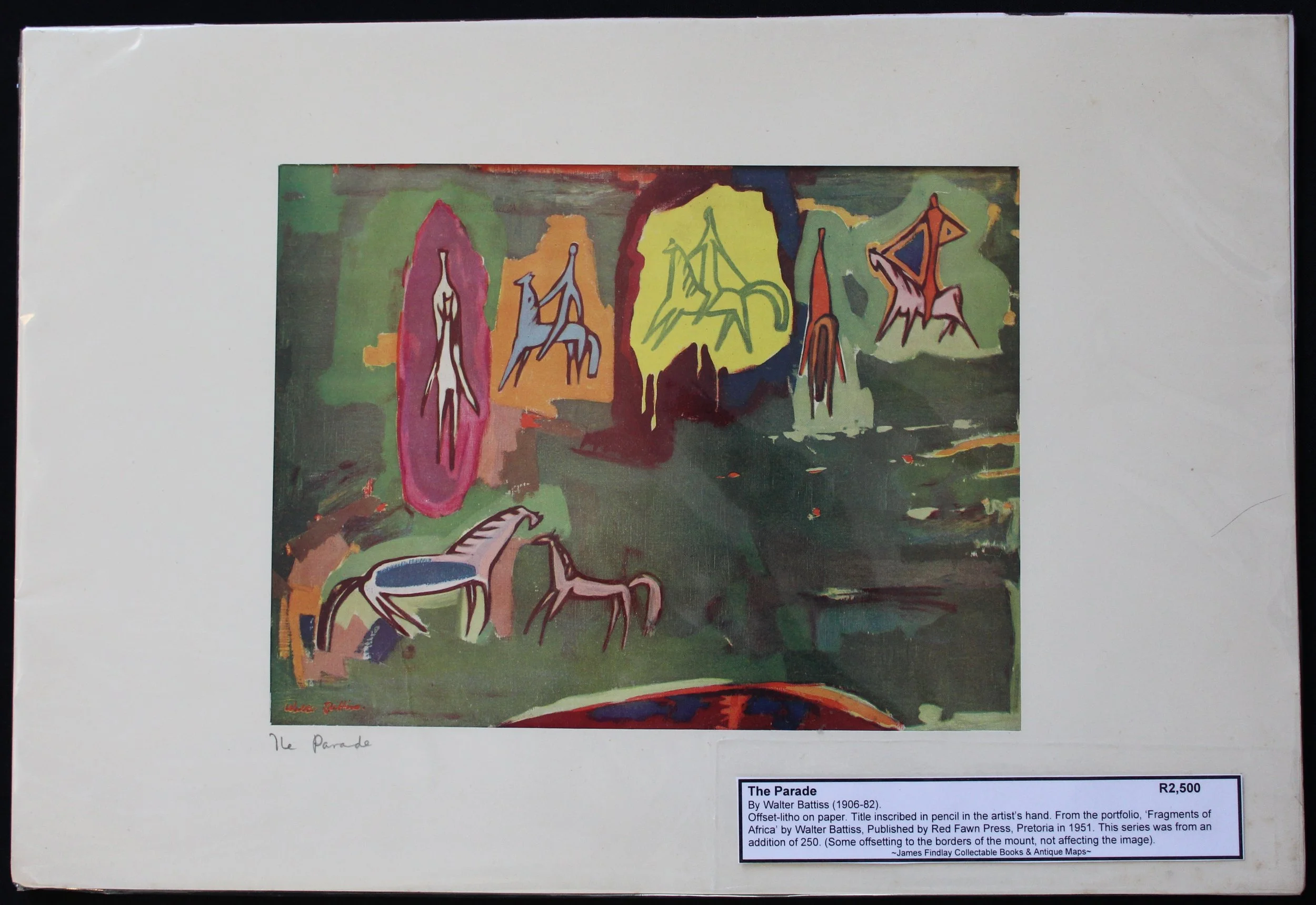 Title inscribed in pencil in the artist's hand. From the portfolio, 'Fragments of Africa' by Walter Battiss, Published by Red Fawn Press, Pretoria in 1951. This series was from an edition of 250.