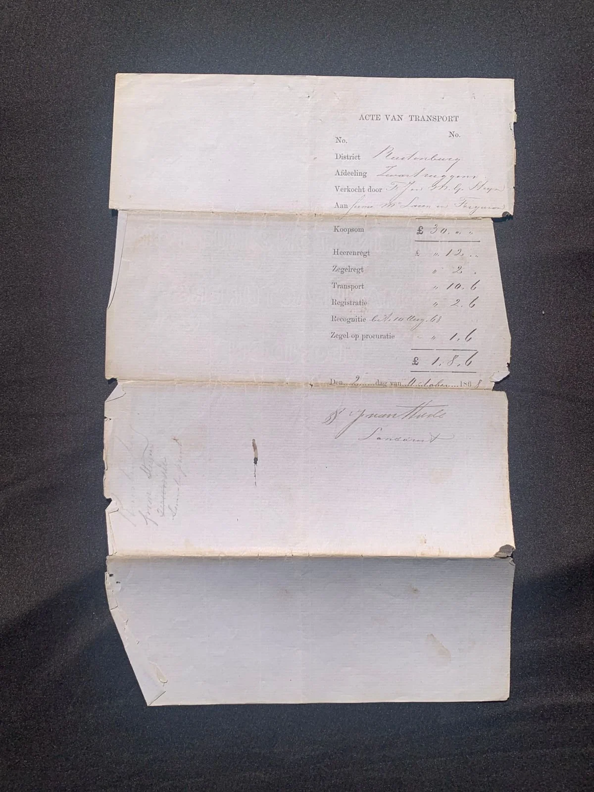 Receipt of Transport Rustenburg 1868 In 1851 the area was under Afrikaner administration. Paul Kruger had a farm there.206mm x 324mmR1,000 Enquire Now Slide 1 Slide 1 (current slide) Slide 2 Slide 2 (current slide) Slide 3 Slide 3 (current slide) Slide 4 Slide 4 (current slide)