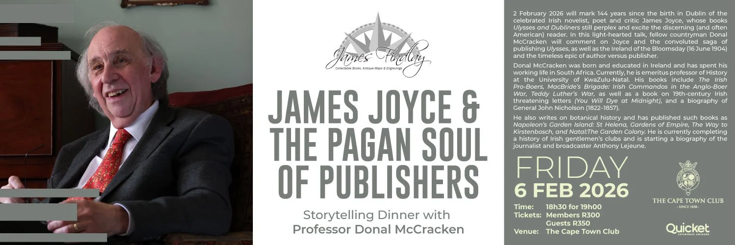2 February 2026 will mark 144 years since the birth in Dublin of the celebrated Irish novelist, poet and critic James Joyce, whose books Ulysses and Dubliners still perplex and excite the discerning (and often American) reader. In this light-hearted talk, fellow countryman Donal McCracken will comment on Joyce and the convoluted saga of publishing Ulysses, as well as the Ireland of the Bloomsday (16 June 1904) and the timeless epic of author versus publisher.