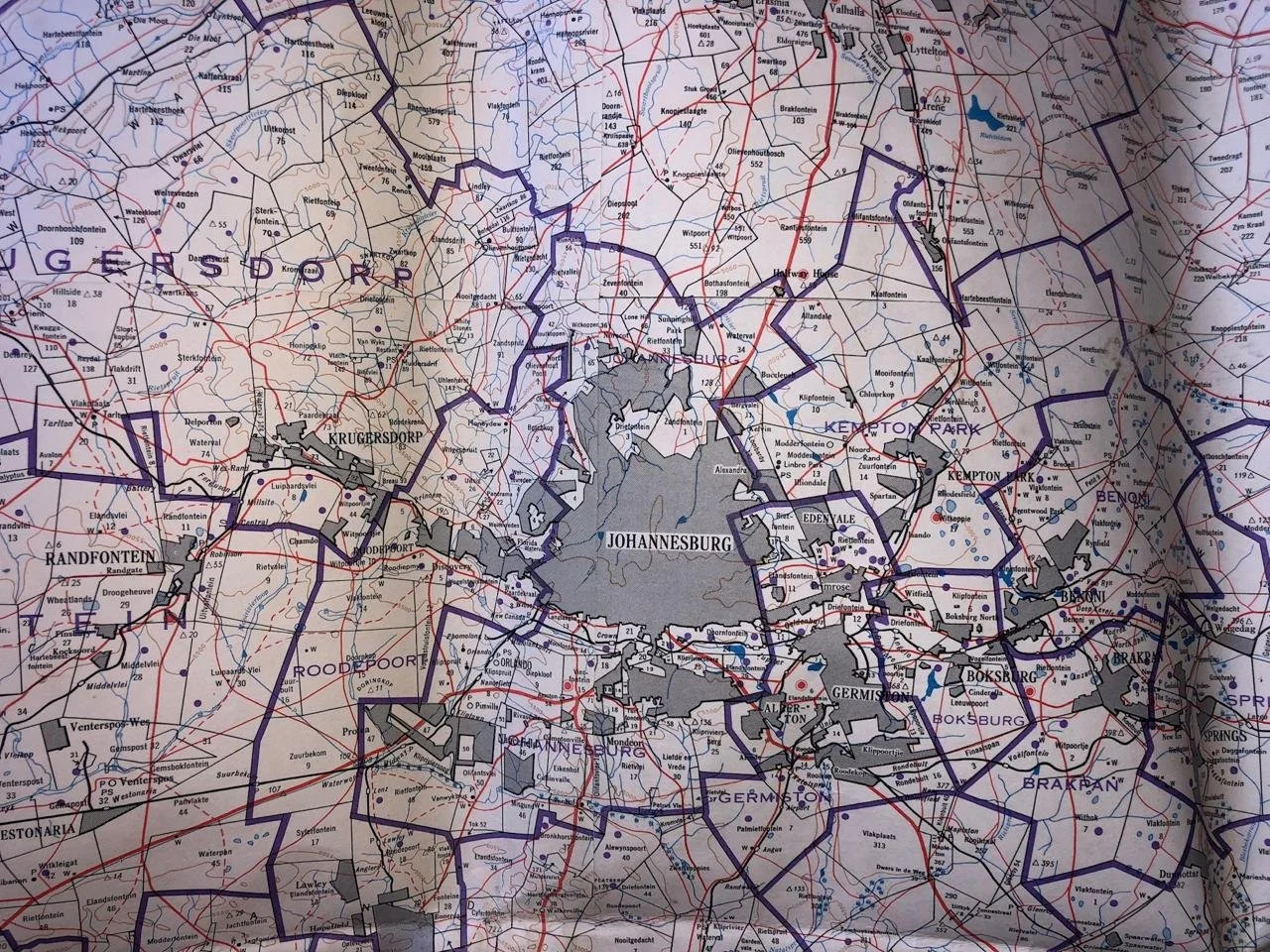 Transvaal / Gauteng map including Johannesburg and Pretoria.