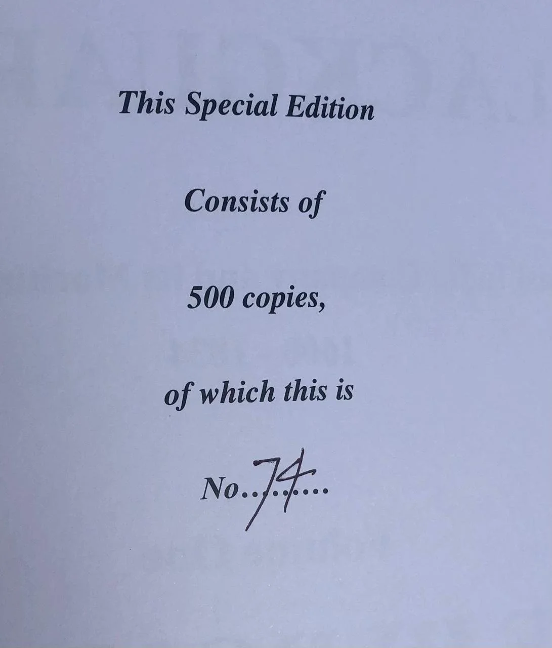 This special edition consists of 500 copies, of which this is no 74.