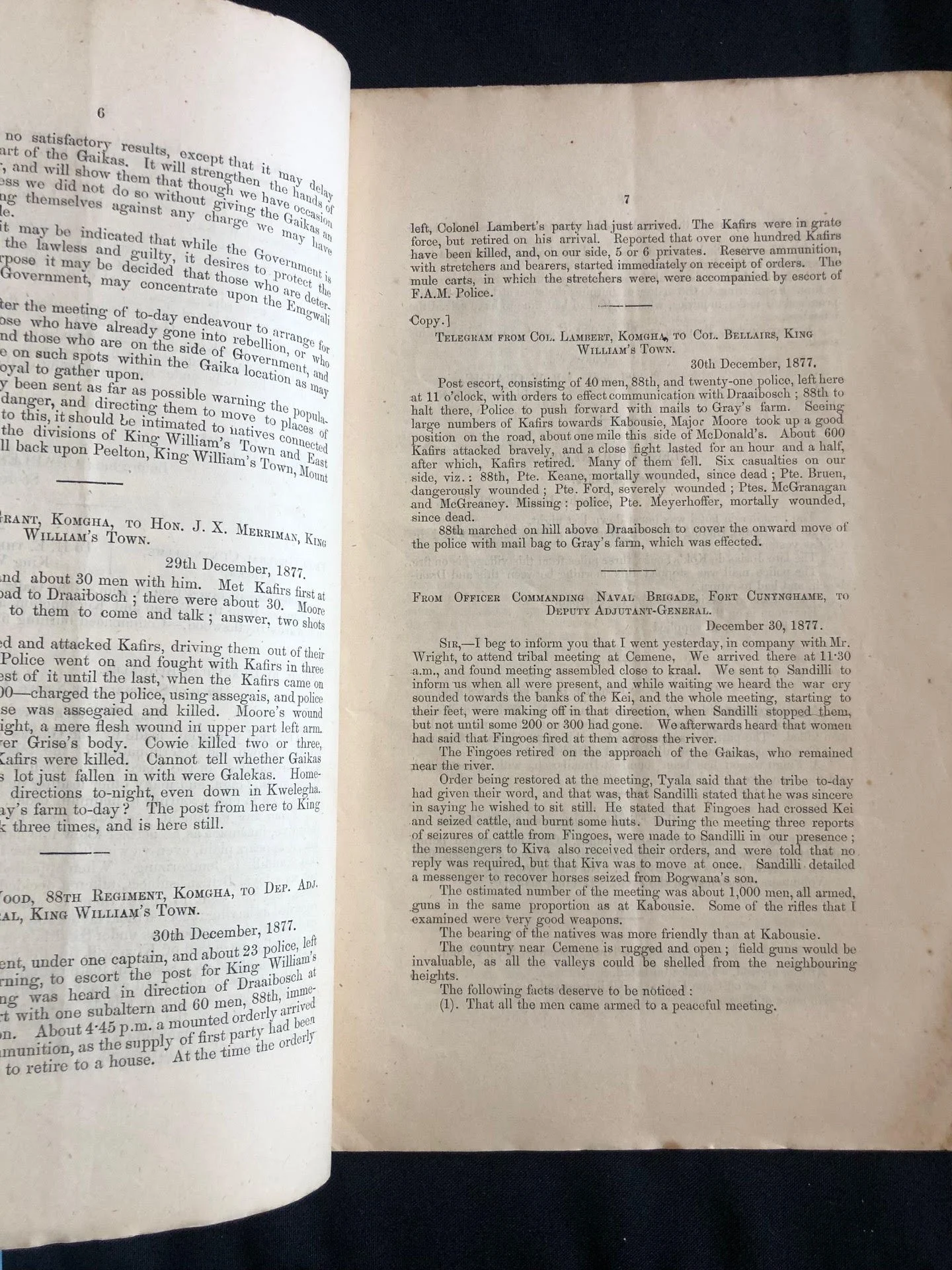 Blue Book – Despatches: Eastern Cape Frontier War 1878