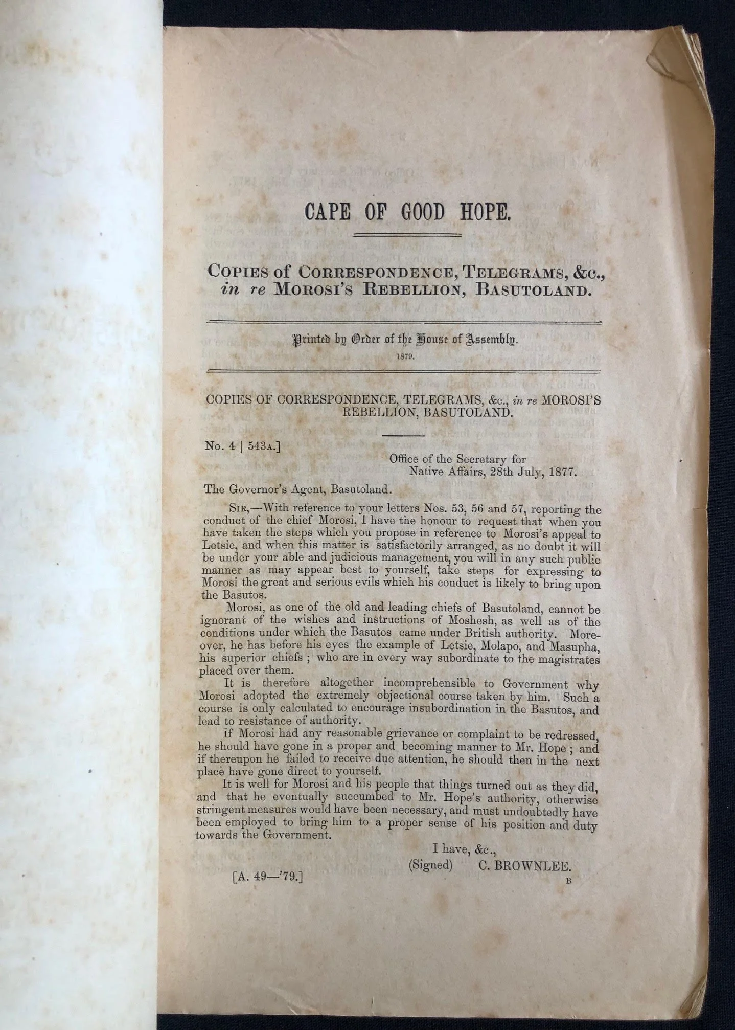 Blue Book – Morosi's Rebellion (Basutoland) 1879