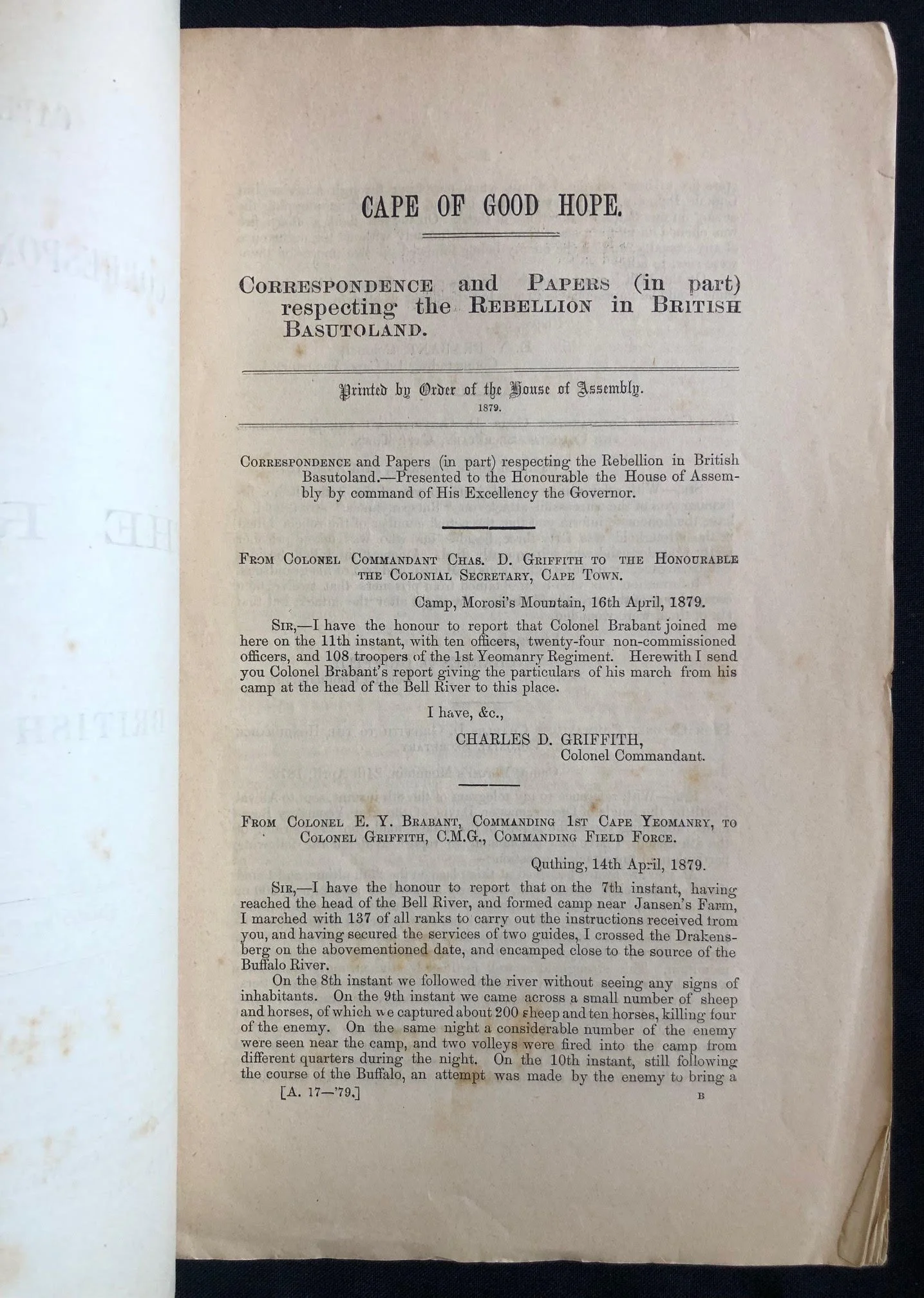 Blue Book – The Rebellion In British Basutoland 1879