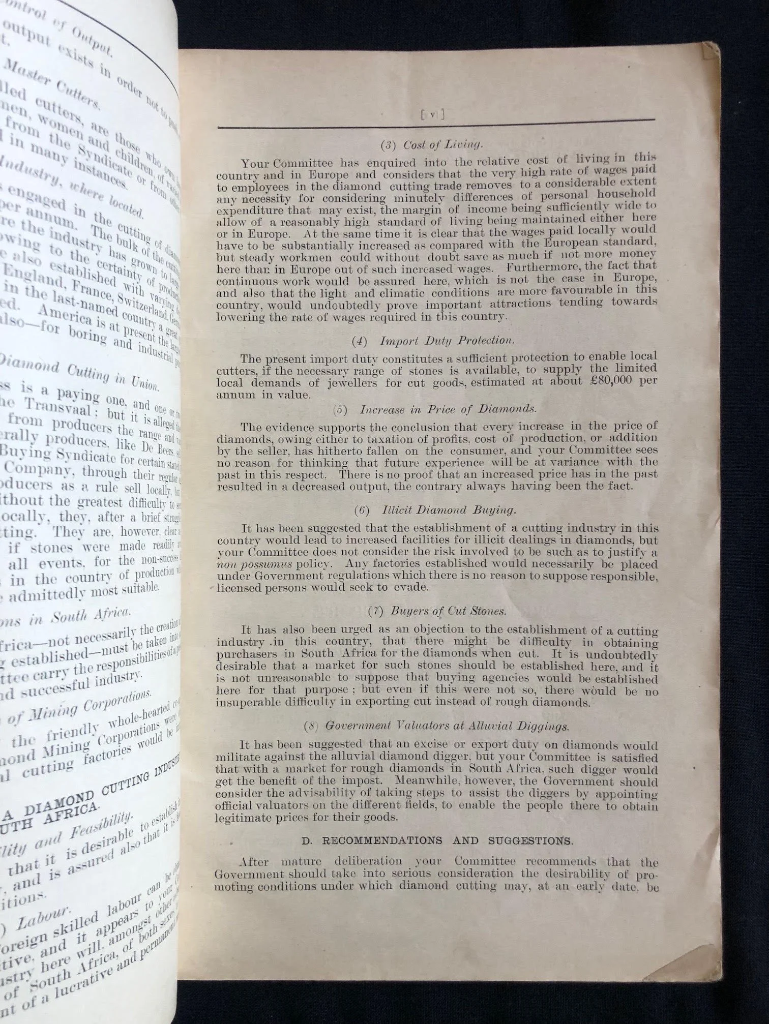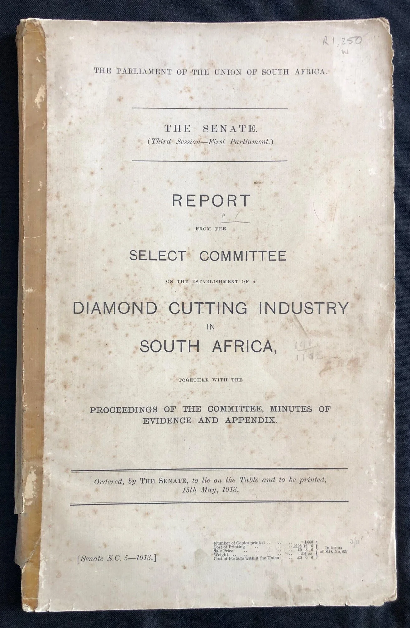 A report on the establishment of a diamond cutting industry in the Union of South Africa.