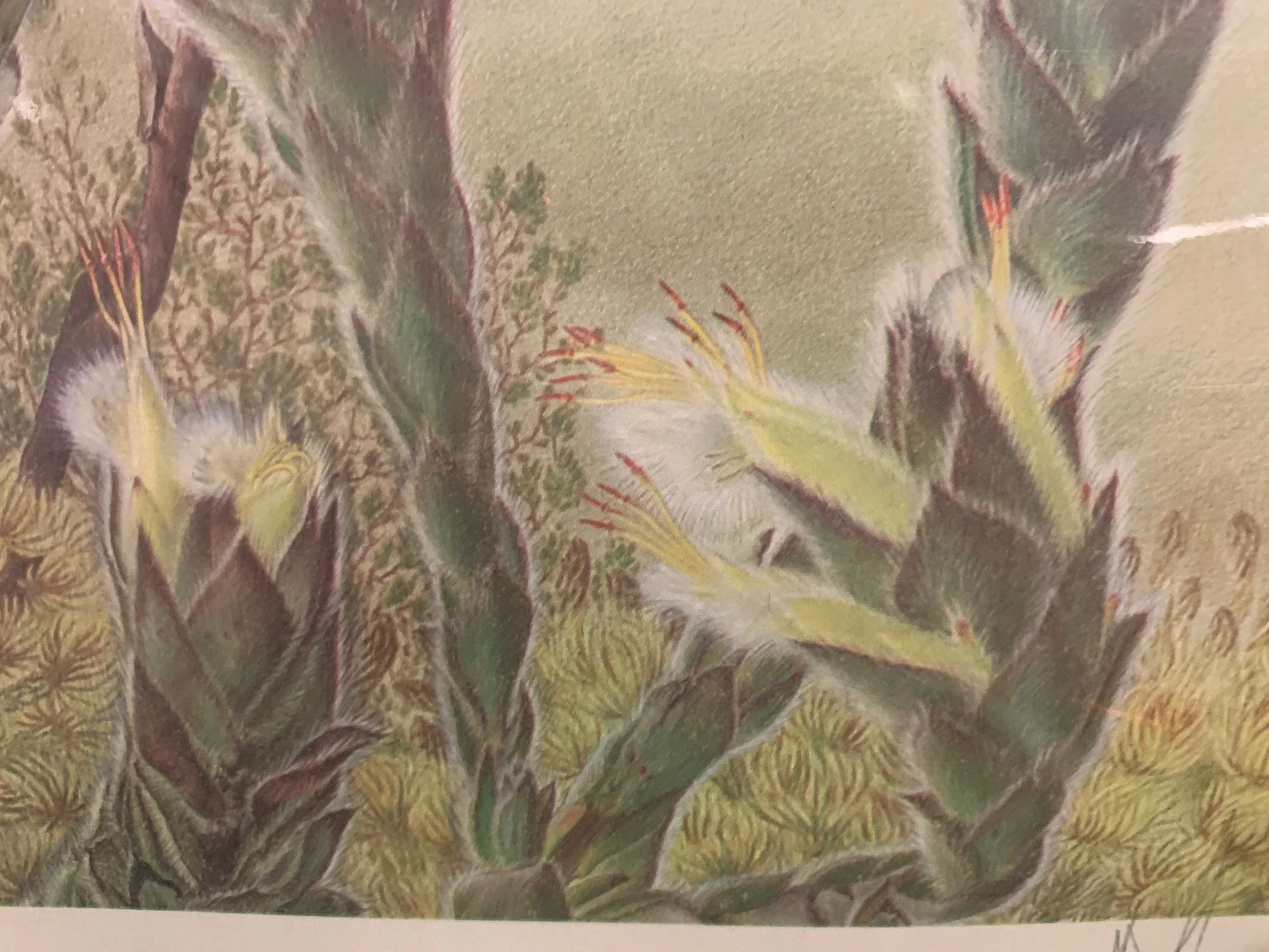 Signed print by the botanical artist Thalia Lincoln. From the Protea book Mimetes by John Patrick Rourke. The Proteaceae are a family of flowering plants predominantly distributed in the Southern Hemisphere. The family comprises 83 genera with about 1660 know species.