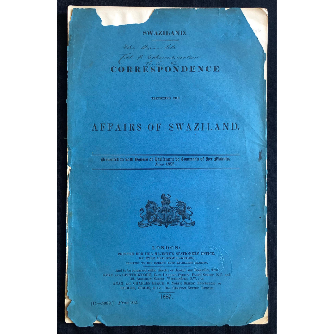 Blue Book – Affairs of Swaziland 1887 R2,000