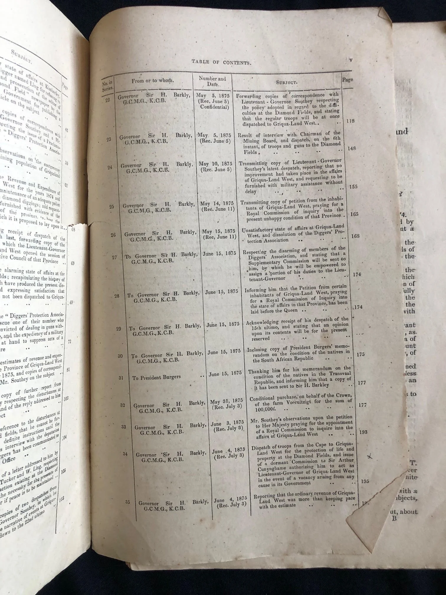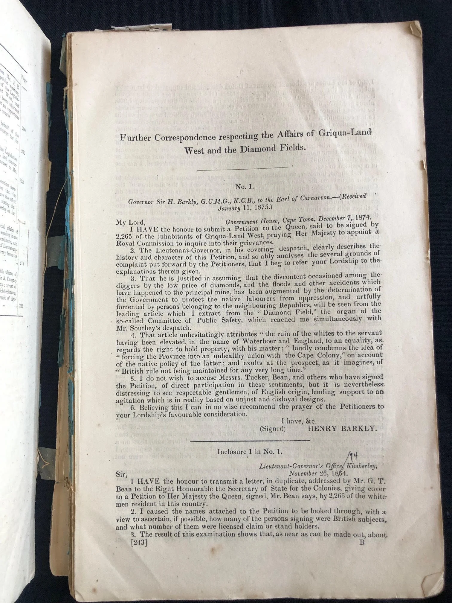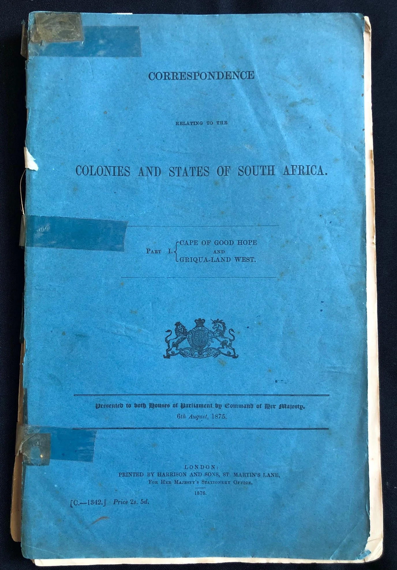 Blue Book on the Cape of Good Hope, including reference to diamond mining, Orange Free State, ZAR (South African Republic), and more.