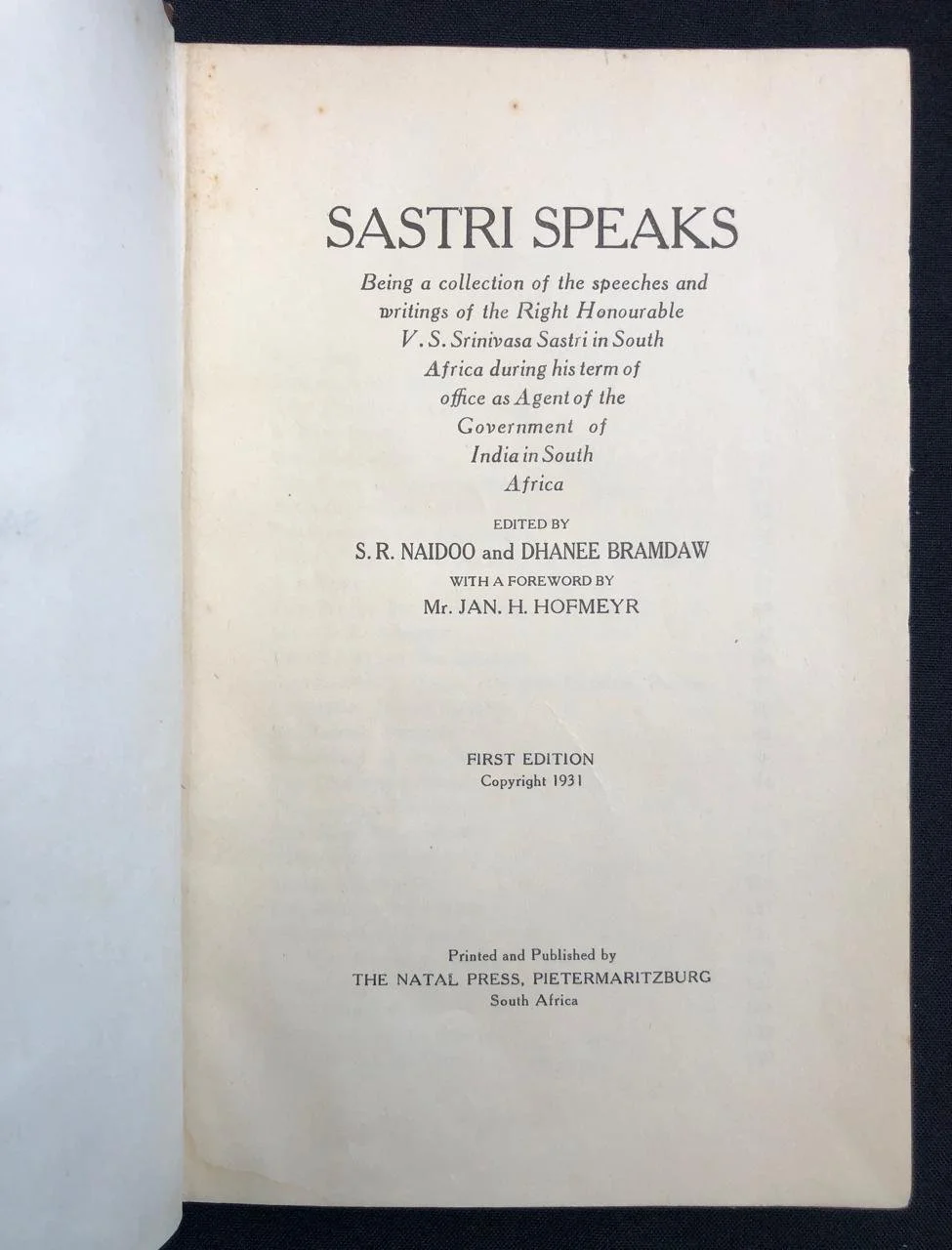 Being a collection of the speeches and writings of the Right Honourable V.S. Srinivasa Sastri in South Africa during his term of office as Agent of the Government of India in South Africa.