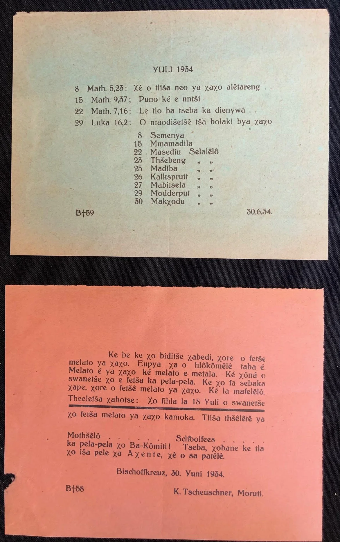 “K. Tscheuschner” is a reference to Dr Magdalene Schiele; “moruti” is Sotho for teacher.