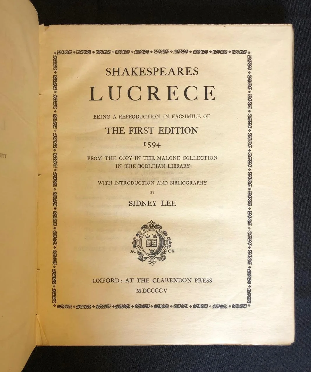 Published as a facsimile reproduction of the first edition of the poem, The Rape of Lucrece, from 1594.