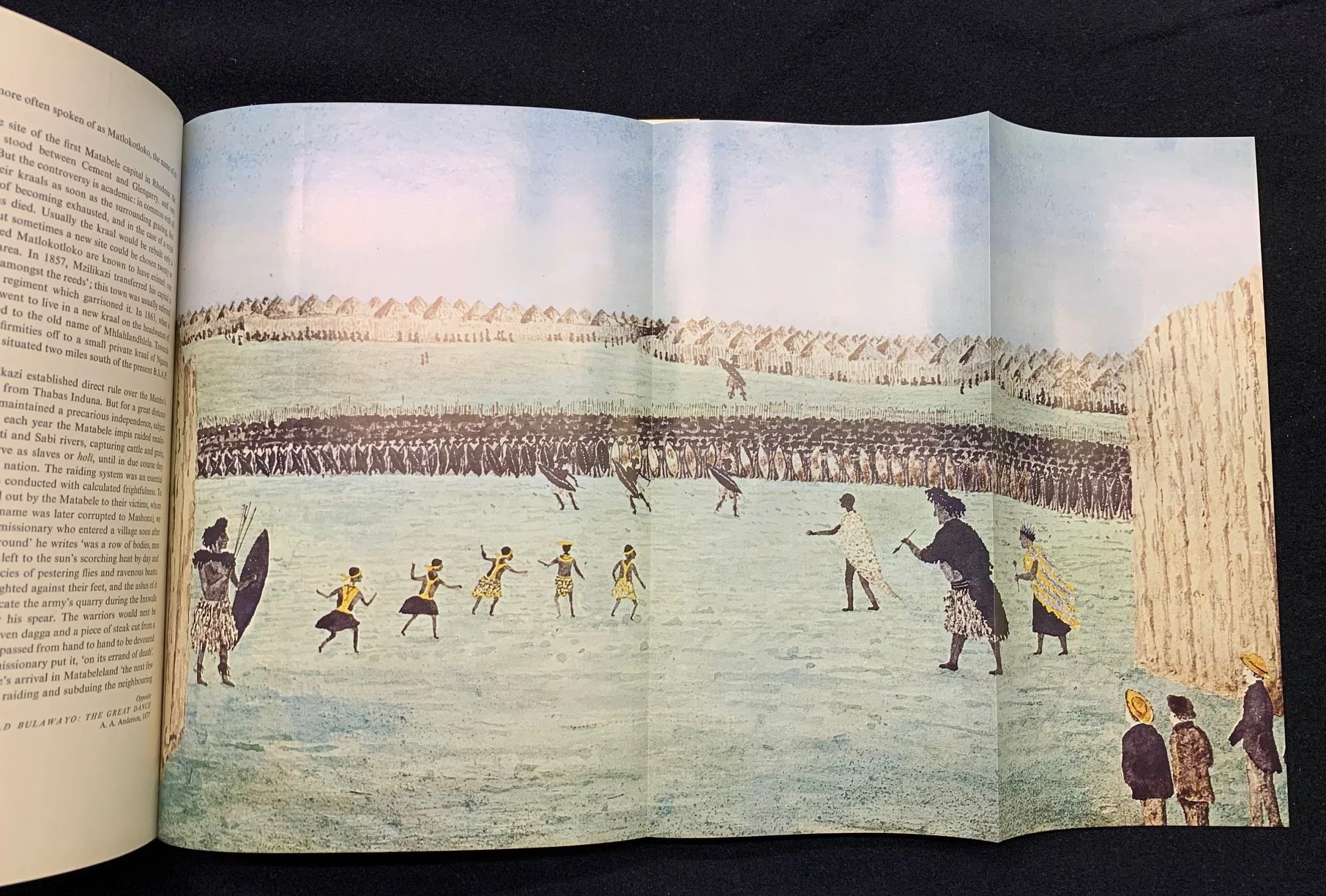 Mzilikazi, originally a Zulu chief,led the Matabele nation to the highveld around Bulawayo in 1840, and ruled this territory until his death in 1868. Suceeded eventually by Lobengula, Matabeleland and its capital were captured by the Europeans pioneer settlers under Dr Jameson, what the author describes as a remarkable Calvary Blitzkreig”. This was seventy five years ago and has become known as the Matabele War : the two pitched battles at the Shagani and Bembesi, are fully described.